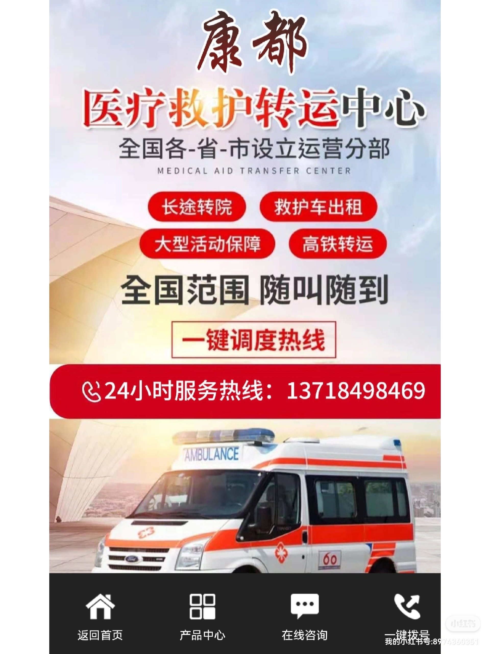 三沙120救护车长途转运告诉您救护车是一种在时间前提下为病情严重的伤者提供医疗保障的汽车,可以帮助那些缺乏运输或危急从现场转移的病人。特殊类型的救护机构,如医院机场,在紧急情况下提供旅行或度假,远离医院。养老院或护理院的老年人在提供长期护理时经常使用救护车。救护车的应用:一、救护车专车,专人负责,出车人员穿工作服。二、救护车上的医疗器械每次接送任务完成后,应进行检查、补充。三、保持救护车清洁,每次